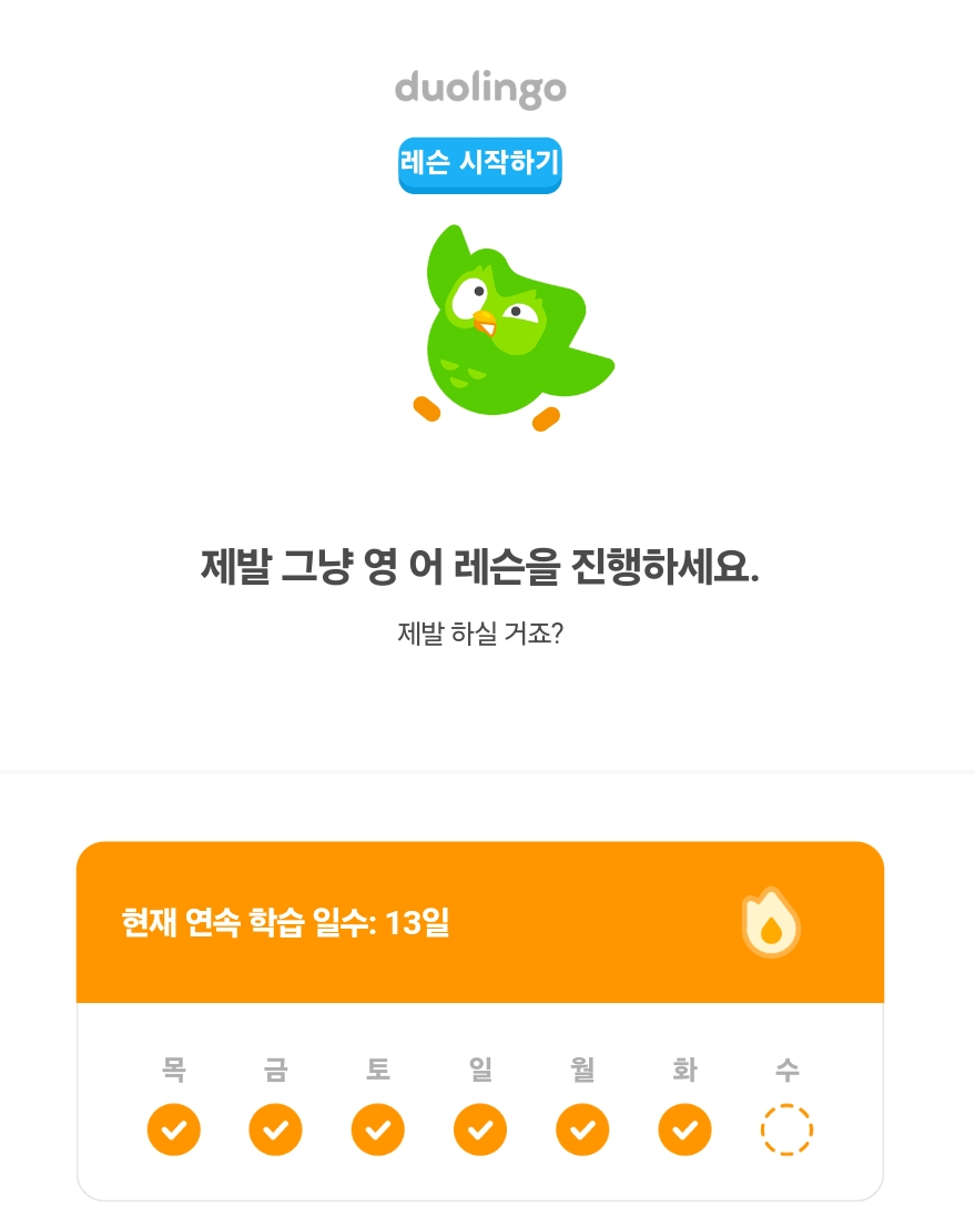 하루라도 안하면 저렇게... 메일도 오고 앱에서도 알람같은게 온다..