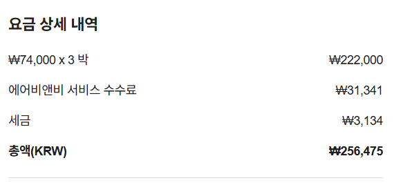 3박4일에 256,475원 결제완