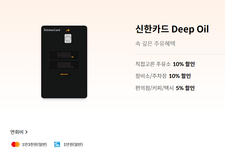 GS칼텍스, SK에너지, S오일, 현대오일뱅크 중 원하는 주유소를 직접 선택해 주유금액의 10%를 할인받을 수 있는 ‘딥오일카드’가 출시되었습니다.